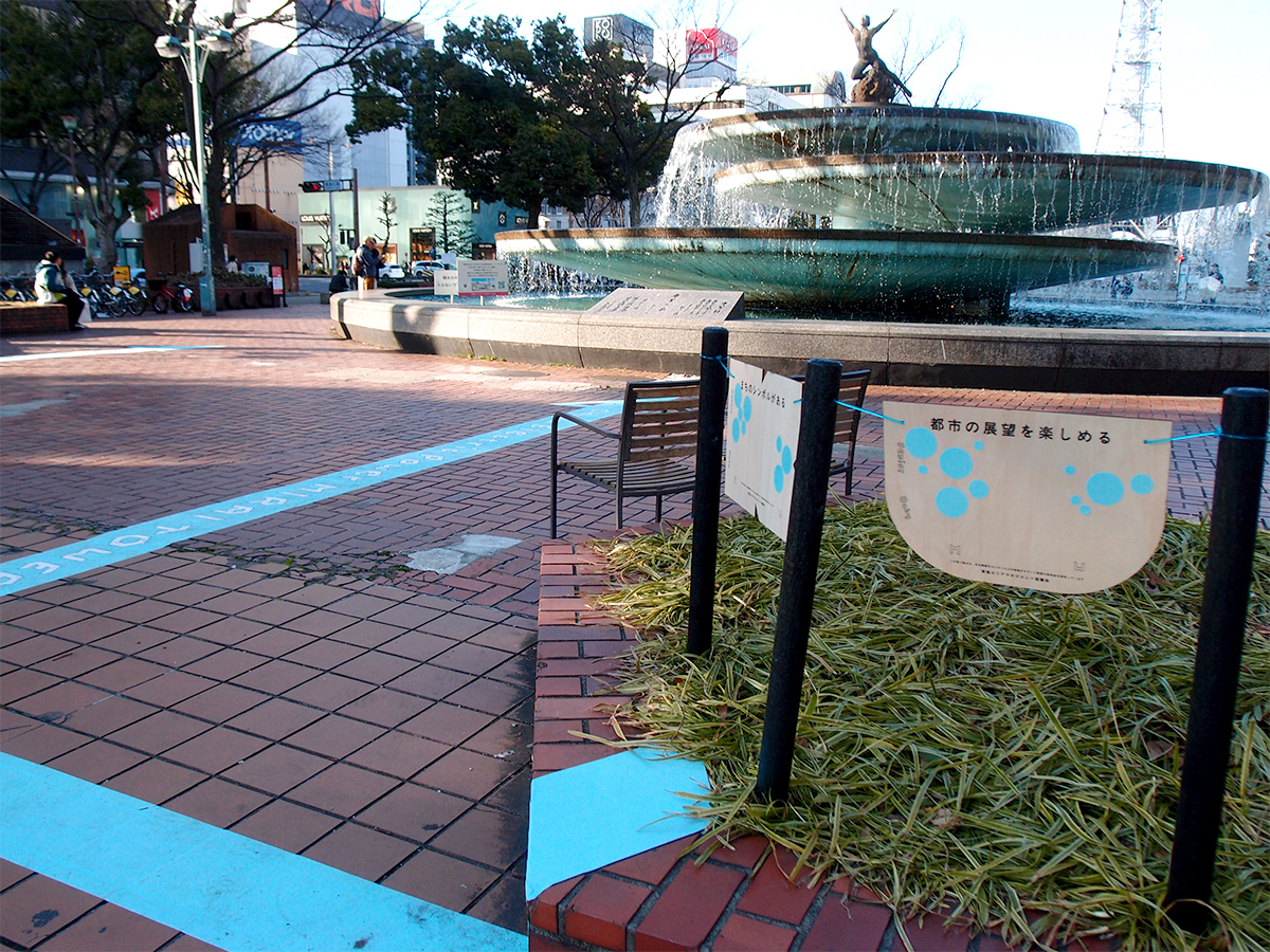 街のイメージ調査機能も備えた木製ボードや矢印型サインを設置した会場