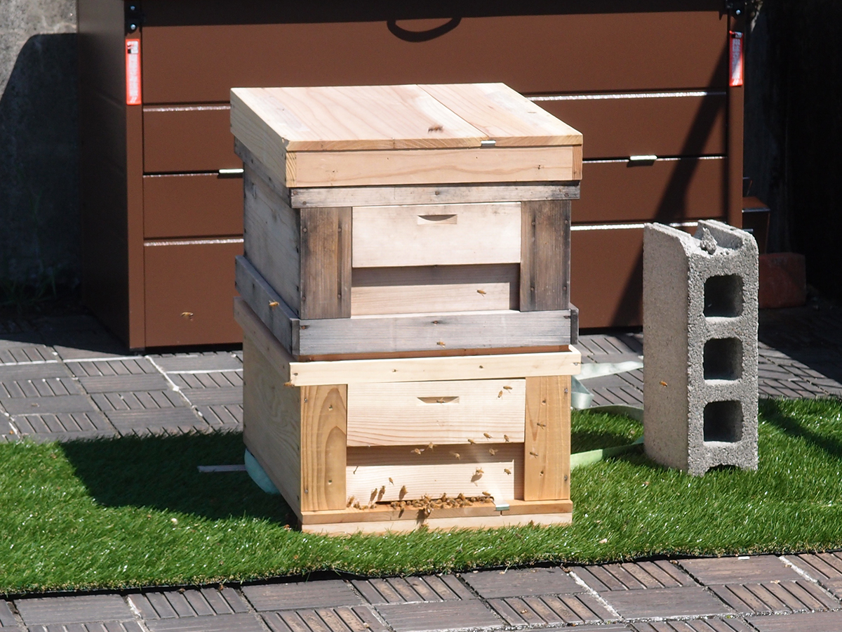 ミツバチが出入りする名古屋市役所西庁舎屋上に設置された巣箱