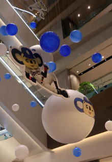 この日から、エントランス、エスカレーターなど、ドアラのオリジナルビジュアルで館内各所を装飾。地下1階からの吹き抜け空間には、ドアラのさまざまな表情やポーズをデザインしたバルーンを展開する。