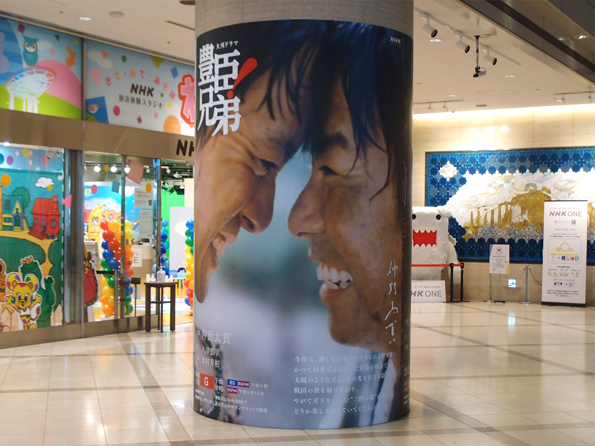 NHK大河ドラマ「豊臣兄弟!」のフォトスポットが1月4日、NHK名古屋放送センタービル(名古屋市東区東桜1)に設置された。