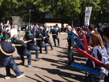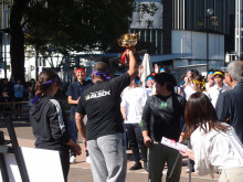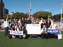 「中日ビル 綱引き大会」終了後に参加した9社で記念撮影