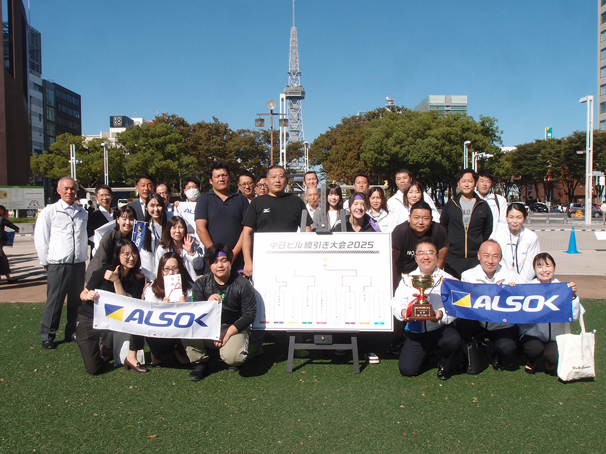 「中日ビル 綱引き大会」初代王者になった優勝した「ALSOK」