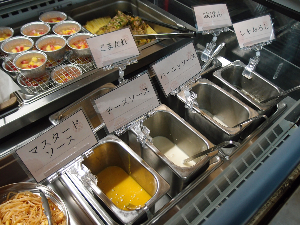 「SEIRO BASE」で用意するごまだれ、マスタードソース、バーニャソースなど