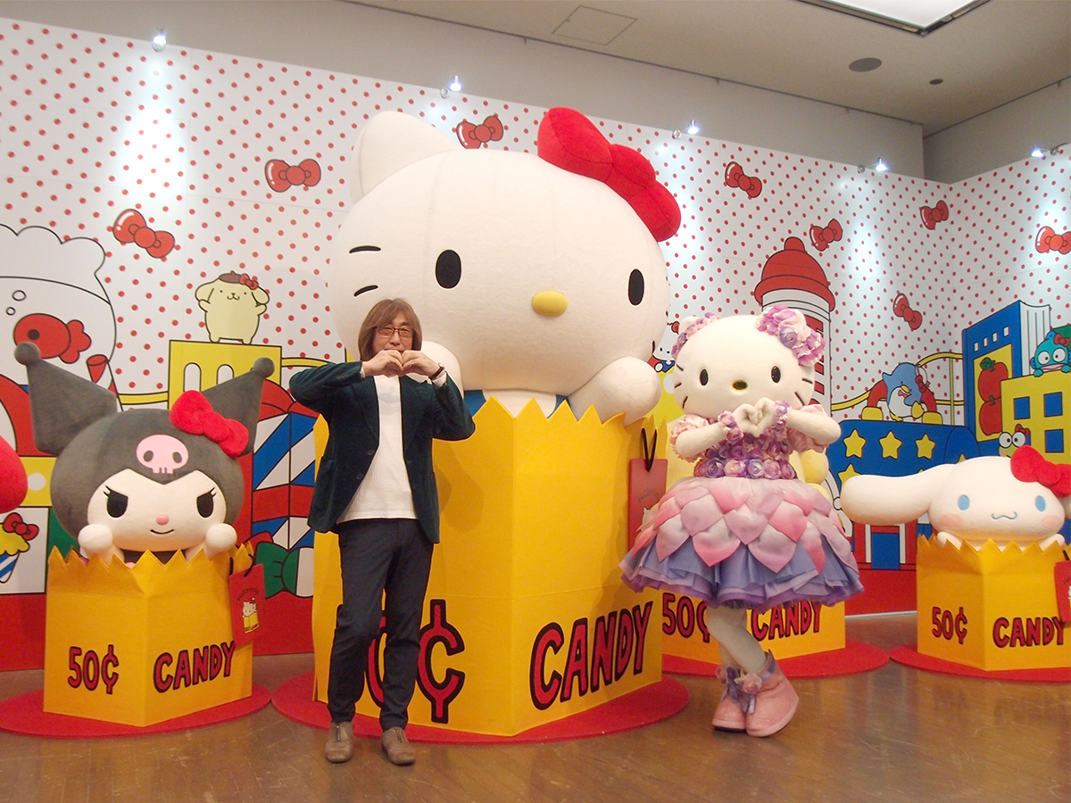 「Hello Kitty展」名古屋会場内覧会に駆けつけたサンリオの高桑秀樹さんとハローキティ