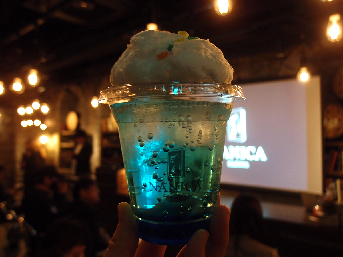 「NANICA-NAGOYA-」で販売する綿菓子を使ったオリジナルドリンク「ナニカのオーロラソーダ」