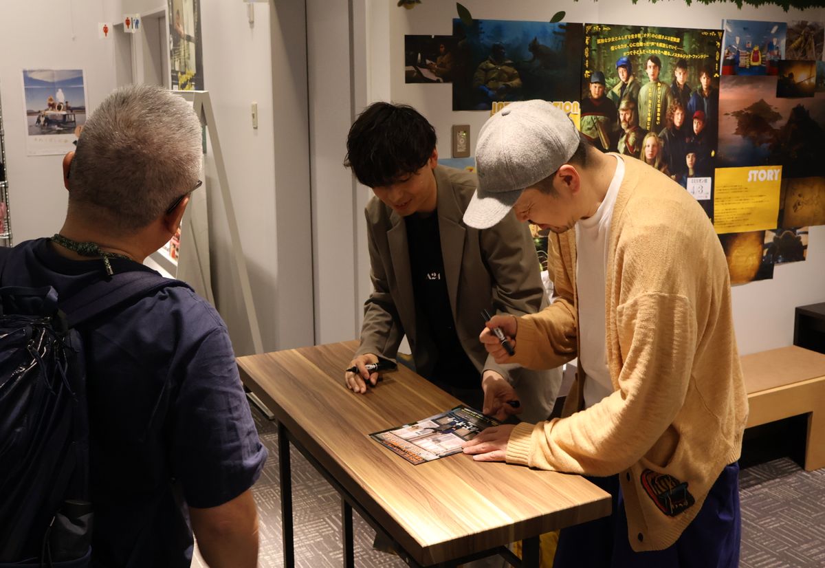 トークイベント「めくるめく映画の話」でのサイン会の様子。大島依提亜さん(右)とSYOさんが多くの映画ファンと交流した