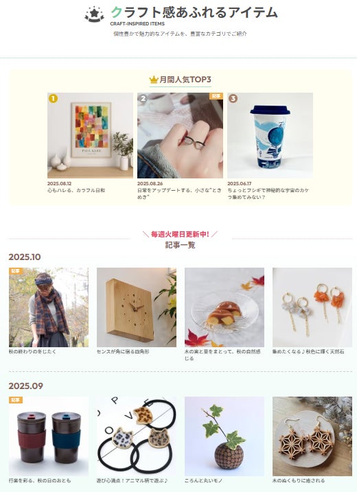 そんな個性あふれるアイテムの数々を、「クラフト感あふれるアイテム」では色々なテーマに沿ってご紹介。