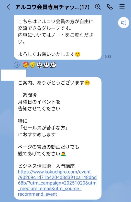 イベント告知に特に活用でき、アルコワ会員は積極的でフットワークが軽い方が多いので、申込につながりやすいです。
