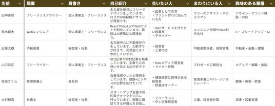 特典2.交流会の参加者リストに毎回プロフィールを掲載!