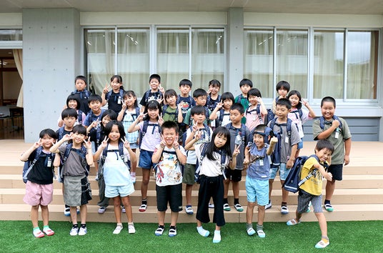 宮崎県木城町でラクサックジュニアを背負う子どもたち
