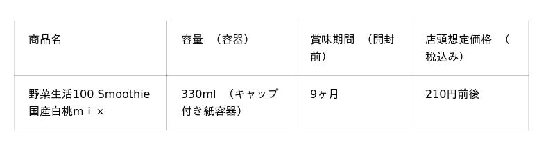 春気分のリフレッシュにおいしいエールを 春限定「野菜生活100 Smoothie国産白桃mix」新発売