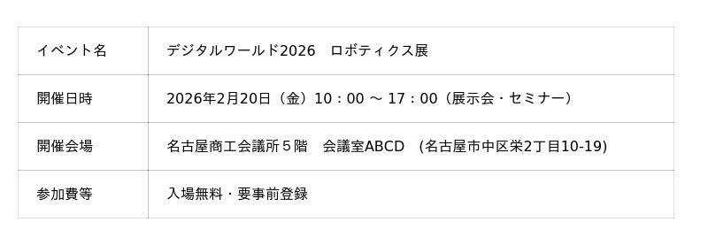 名古屋商工会議所 デジタルワールド2026 ロボティクス展