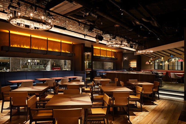 躍動感溢れるバーカウンター、炎のオブジェが印象的なメインダイニング、そして約10mに及ぶオープンキッチン 全155席の大空間で味わう、クラフトビール&ワイン、そしてダイナミックに表現したニューアメリカン~名古屋名駅のレストランシーンに新しい風を吹き込んでいる
