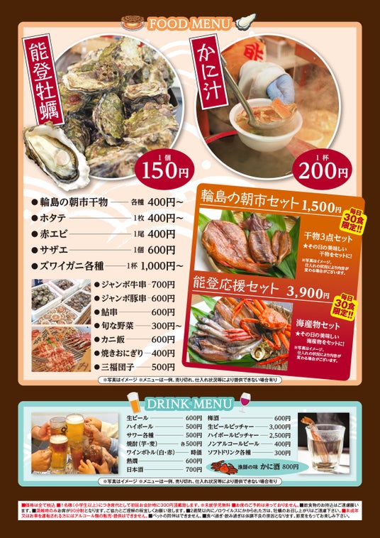 より多くの方に能登の魅力を感じていただくため、一部メニューを協賛価格でご提供いたします。