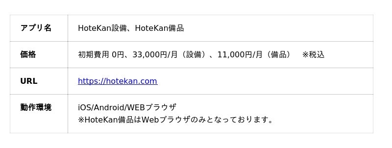 HoteKan(HoteKan設備/備品)は、宿泊施設内における設備の修繕管理や備品管理をスマホで行うことができる、ホテル運営会社とホテル清掃会社の共同開発による施設管理の統合ツールです。施設運営のDX化を手軽に実現することができます。現在、JR西日本ヴィアイン様を始め、150施設を超えるホテル・旅館でご利用頂いております。