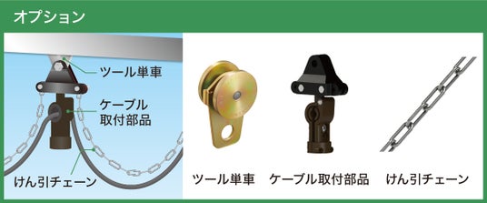 また、オプションでケーブル取付部品等を設置することで、ホイスト活用時にケーブルを取り付けることができます。