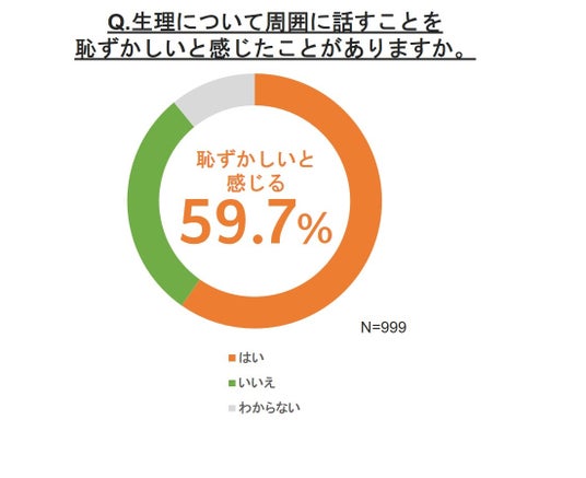 3.約6割(59.7%)の人が「生理について周囲に話すことを恥ずかしいと感じたことがある」と回答