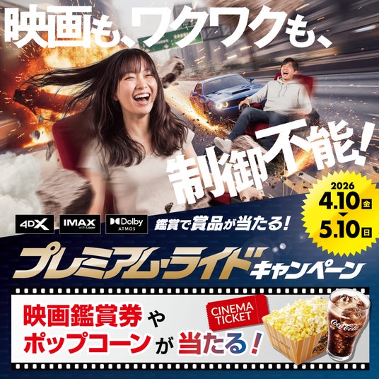 全国で複合アミューズメント施設を展開する株式会社コロナワールド(本社:愛知県小牧市、代表取締役:室橋 義隆)は、2026年のゴールデンウィーク期間中、お客様への日頃の感謝を込め、映画体験をより熱くする「プレミアム・ライド キャンペーン」と、お得に施設を楽しめる「PayPayクーポンキャンペーン」の2大企画を全社で実施いたします。