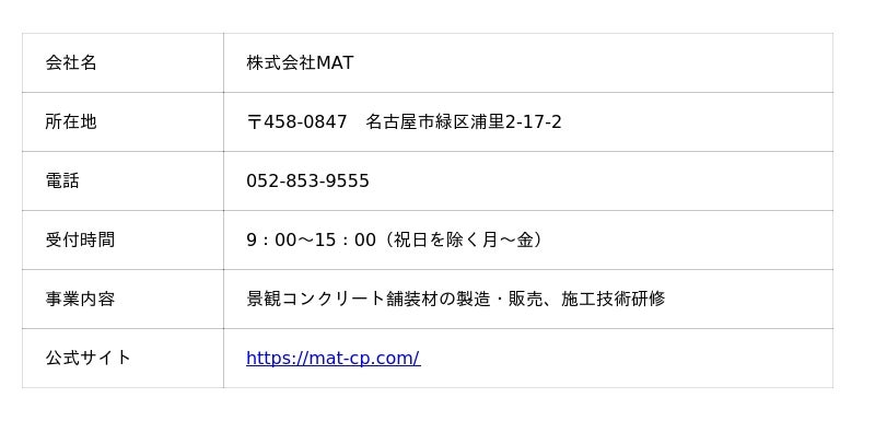 株式会社MATでは、公共空間や外構・舗装リフォームに対応いただける施工店を募集しています。また、歩道橋・通路・外構床面などの景観改善や滑り止め対策をご検討中の自治体・設計事務所・施設管理者・民間企業からのご相談も受け付けています。施工店としての参加をご希望の方、具体的な案件の施工を検討されている方は、公式サイトのお問い合わせフォームまたはお電話よりご連絡ください。